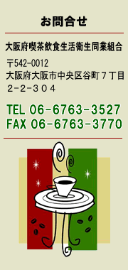2012年8月15日 第3号Vol.3 「まいど!大阪喫茶ニュース」 (PDF) 組合の新しい情報発信ツールとして「まいど!大阪喫茶ニュース」を創刊します。組合員の皆様にメリットいっぱいの内容でお届けしていきます。 |