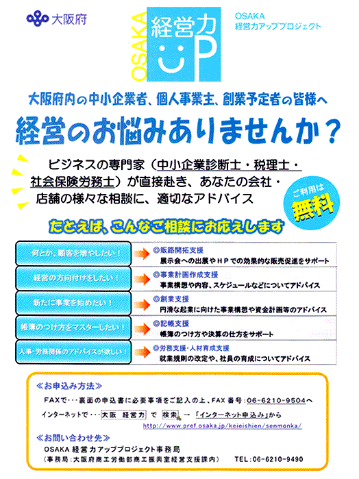 2011年8月 再発行大阪府喫茶飲食生活衛生同業組合入会案内 「喫茶店・飲食店・スナック・カラオケ店等々幅広い同業組合に加入しませんか?」 健康保険料改定額記載・紹介者記入欄付き(PDF) |